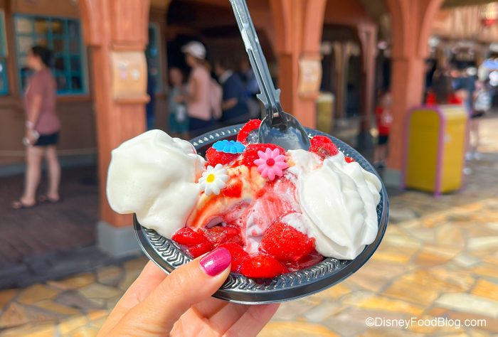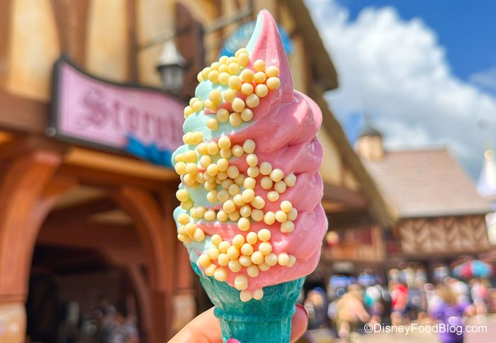 During our visit, the Aurora Cone and the Rapunzel Sundae were not yet listed on the Storybook Treats menu on the My Disney Experience app, though it could just be that Disney didn’t update the app with the menu change yet. Be sure to check out those physical menus in the parks; you never know what you might discover!