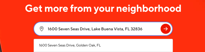 Once logged in, you’ll type in the hotel’s full address. You’ll want to use the address the Cast Member confirmed earlier. TIP: Be sure to not type in your hotel room number. You don’t want to give that out and drivers will not deliver to your hotel room door.