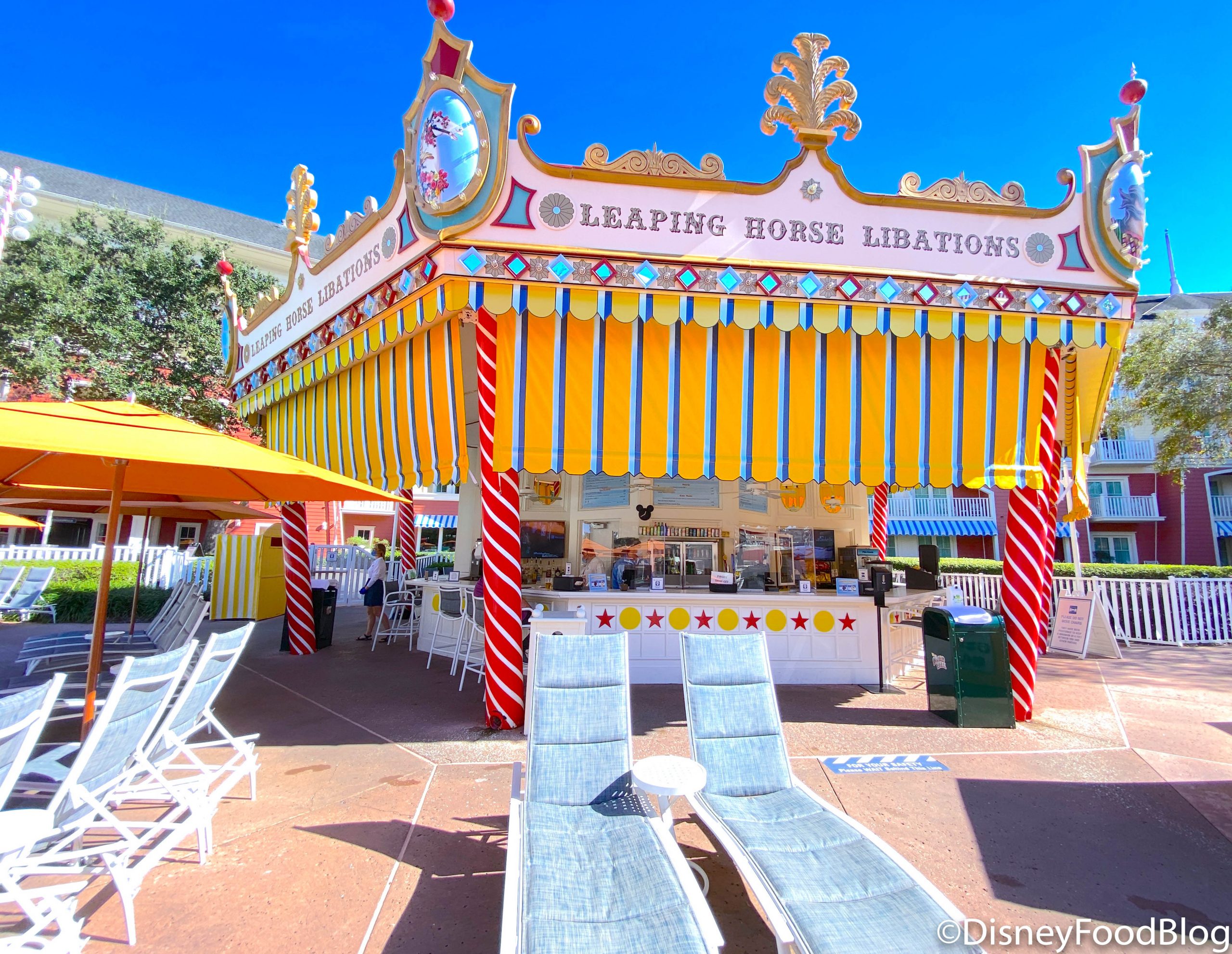 Welcome to Leaping Horse Libations! Out by the Luna Park Pool, you’ll find this poolside bar with all the basics you need for an afternoon in the sun — cold drinks, snacks, and even a few lunch items to get you through your Florida sun-and-pool afternoon!