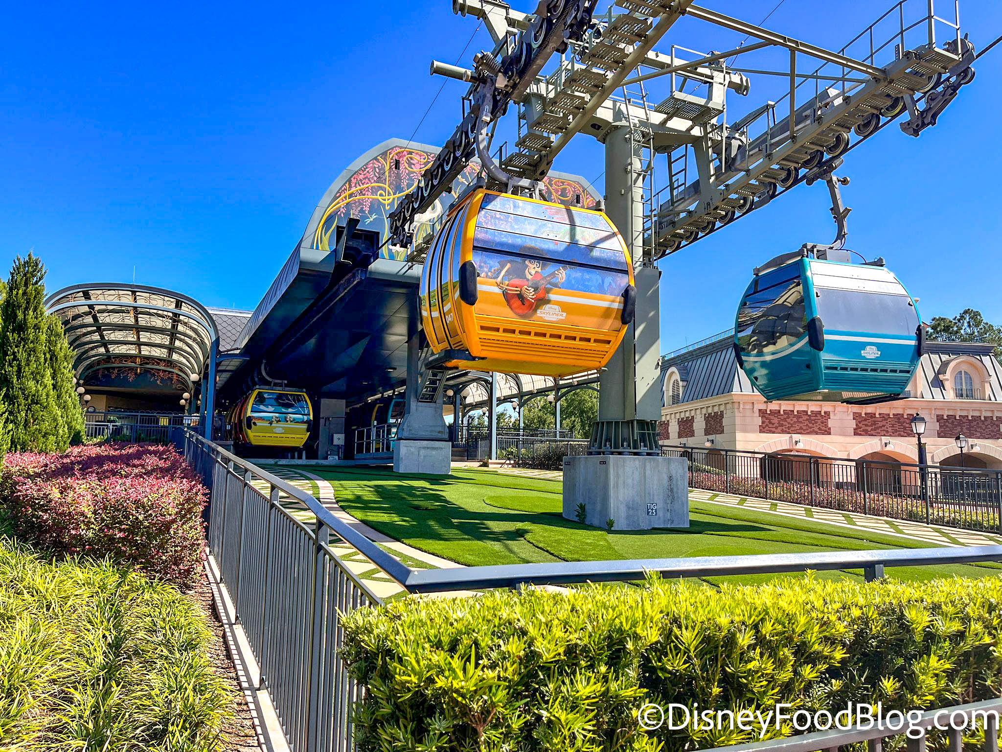 The International Gateway also hosts EPCOT’S Disney Skyliner Station. From EPCOT, the Skyliner has a stop at Disney’s Riviera Resort and continues directly to Disney’s Caribbean Beach Resort (which serves as the Skyliner Hub).