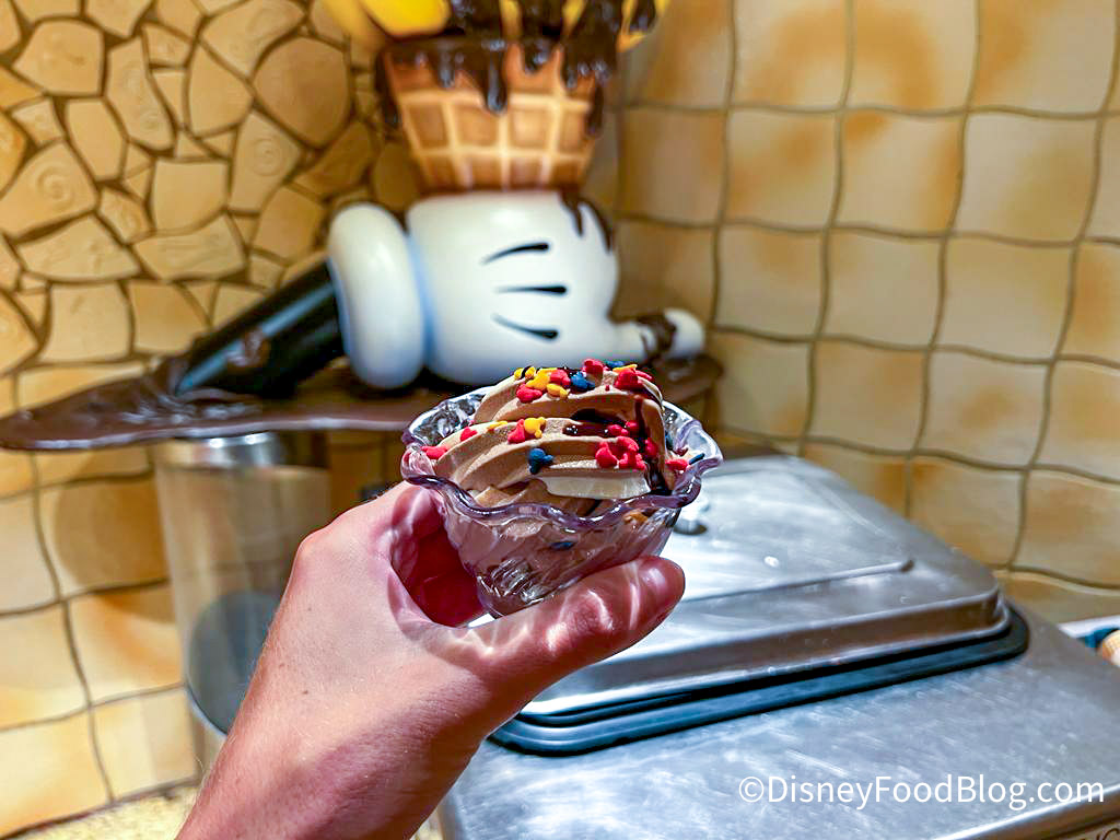 We loved the worms in dirt cup because of that delicious chocolate sweet flavor, and the chocolate cake because it’s rich, gooey, and sweet. Our pro-tip is to put the cake at the bottom of your cup before making your sundae! Oh, and speaking of our sundae…