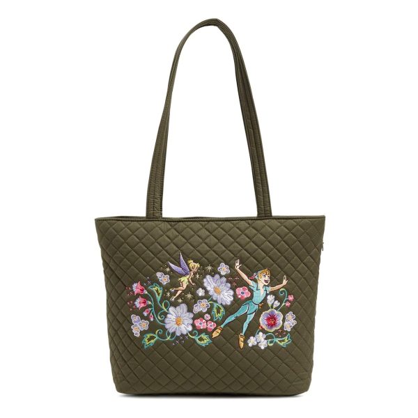 The small Vera tote features both Tinker Bell AND Peter Pan in this embroidered design! The embroidery is only featured on one side of the tote while the remainder of the outside is filled with the gorgeous olive-green color.