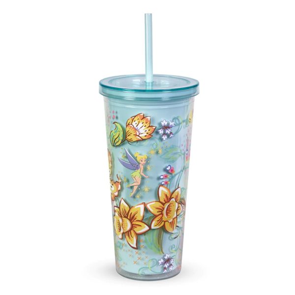 This printed tumbler is ready to accompany you on all your adventures. It’s made of double-walled acrylic and comes with matching straw. The outside design features Tinker Bell flying in pixie dust nestled among the flowers.
