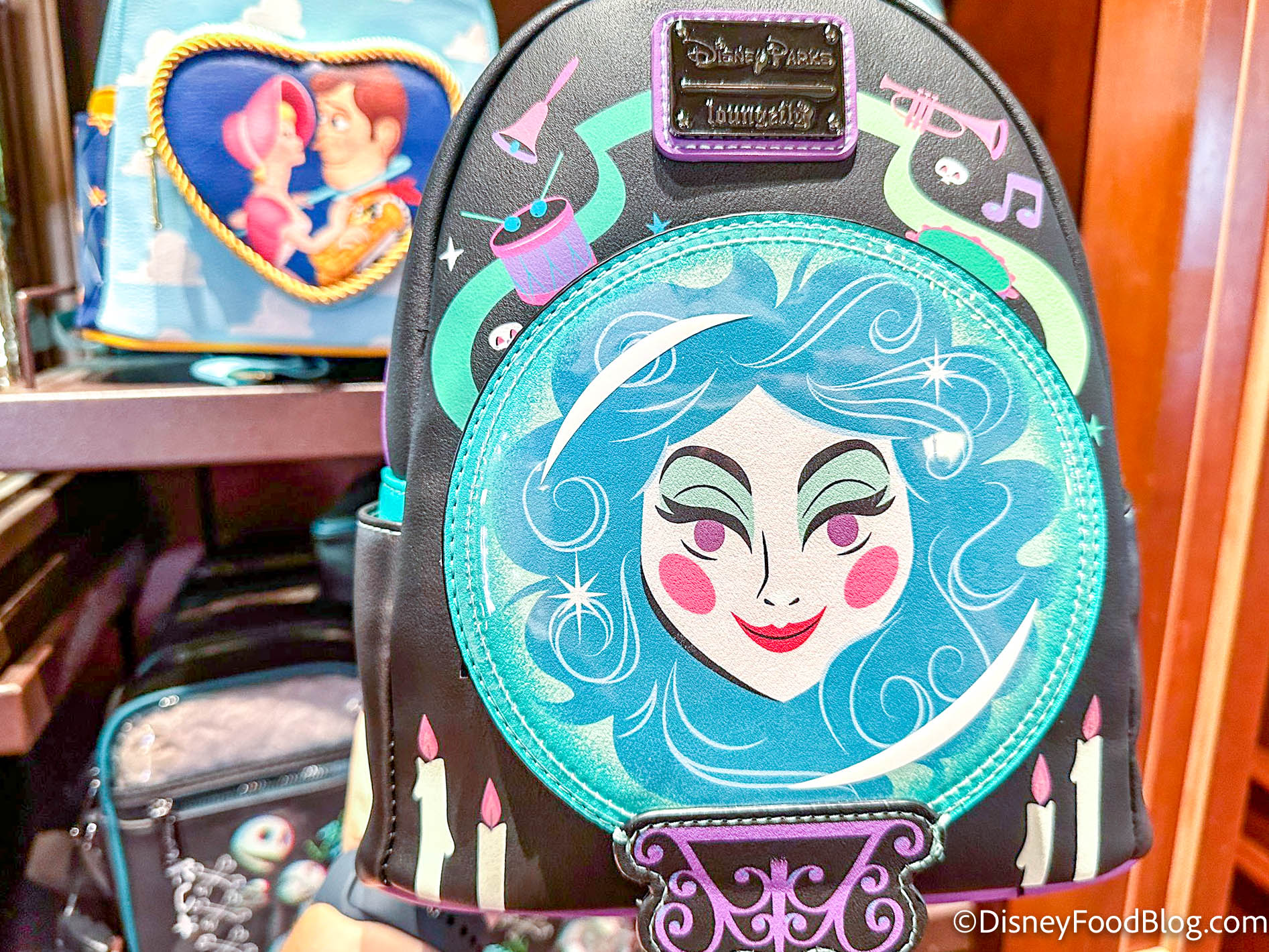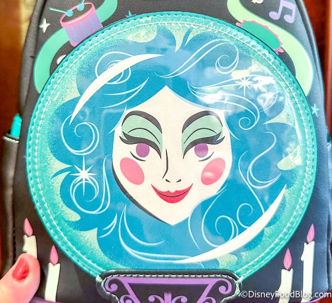 The bag features Leota front and center in her crystal ball on the front zip pocket.