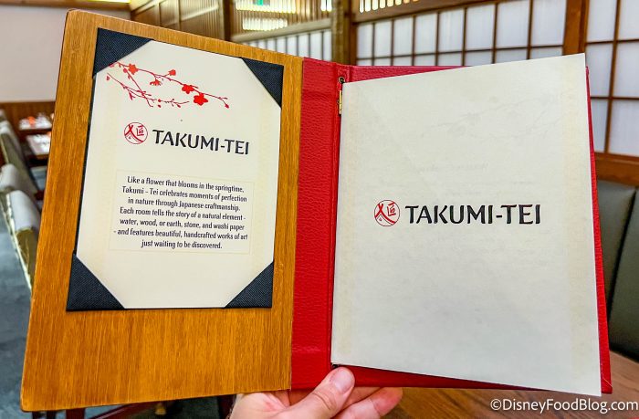 Takumi-Tei — which means “house of the artisan” — is inspired by Japan’s natural beauty. Guests are seated in one of five rooms inspired by a natural element — water, wood, earth, stone or washi paper — in this EPCOT restaurant tucked inside the Japan pavilion.