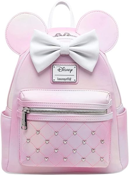 This bag is built for style and personality, and to get you through your day in the parks. Like most Loungefly mini-backpacks, this one is made of faux leather, features an adorable set of Minnie Mouse ears at the top, and is branded with their signature enable Loungefly label. The front pocket is adorned in Mickey-shaped hardware against pops of pink, purple, and white. This particular bag is actually the fourth in its series!