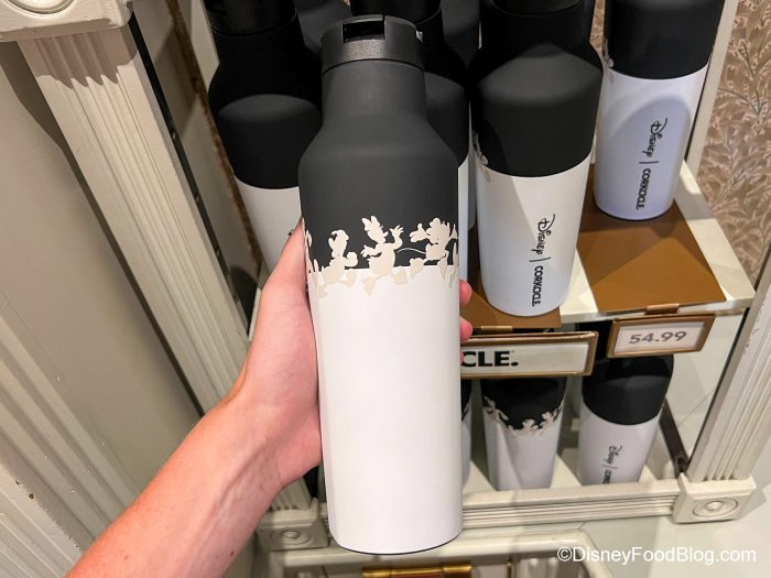 If you’re a Corkcicle fanatic, this one would be perfect to take to Disney World or Disneyland Resort! It’s a simple black-and-white pattern with Mickey and friends wrapped around the outside. It comes with a screw-on lid with a flip-up sipper so it’s easy to drink out of!
