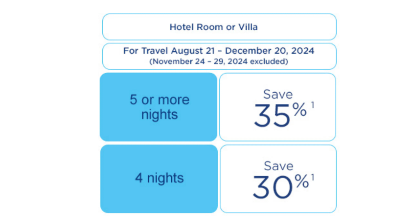 Your departure dates must be between May 1st and October 15th, 2024, and only select dates qualify for this discount. Call 877-728-7282 for more information and to book your trip!