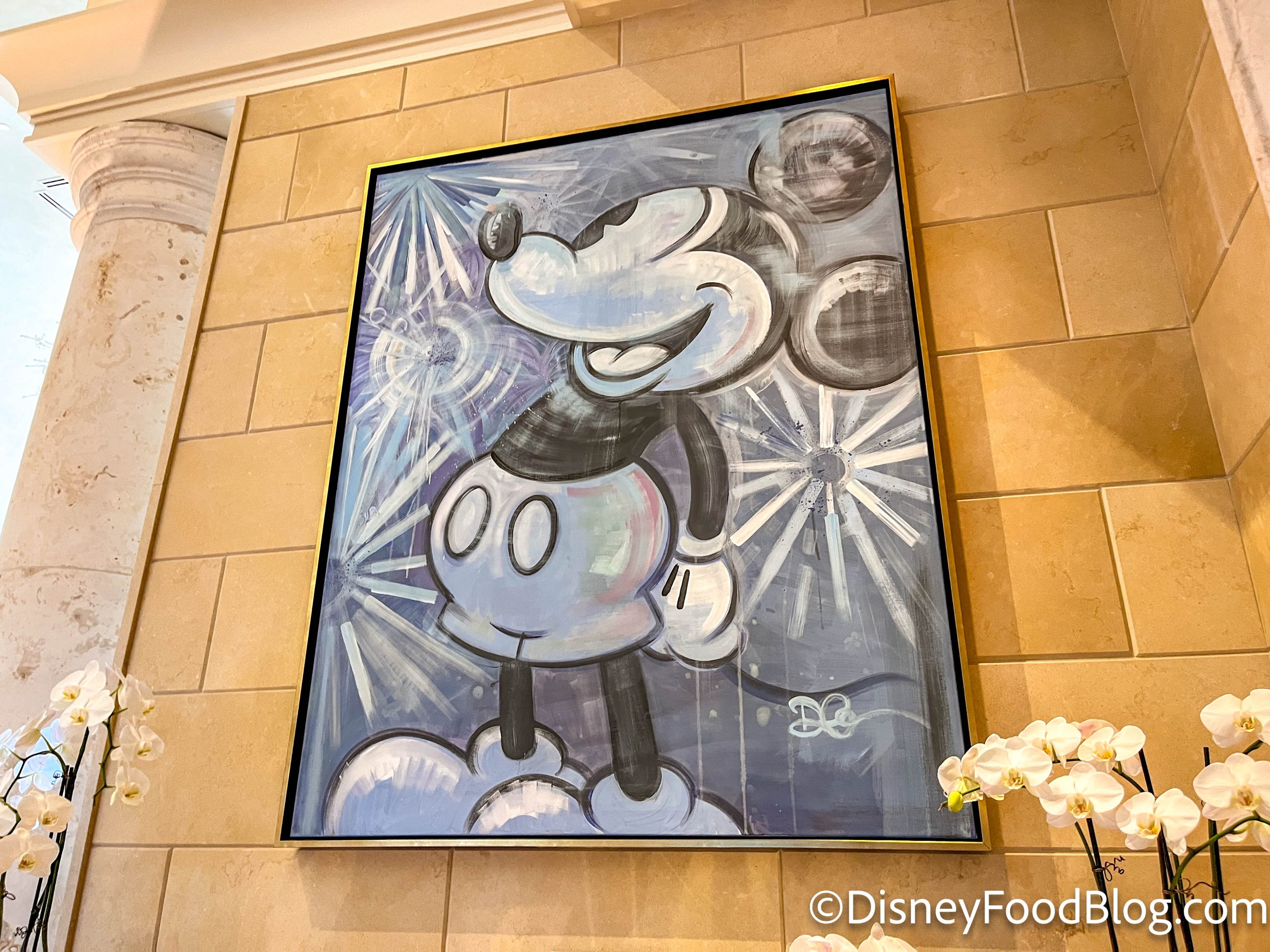 We were invited to the Four Seasons to check out some new artwork from Dom Corona. Corona painted 14 new pieces for the hotel and we got to see them all — each featuring iconic Disney characters and perfectly themed to the Four Seasons Resort.