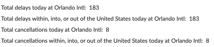 For reference, on a relatively normal summer day, Orlando International Airport reported 183 delays across the board, per FlightAware. That same day, the weather conditions were partly sunny, with a chance of afternoon showers and thunderstorms. The chance of rain was 50% throughout the day, which is pretty standard for Central Florida in the summer.