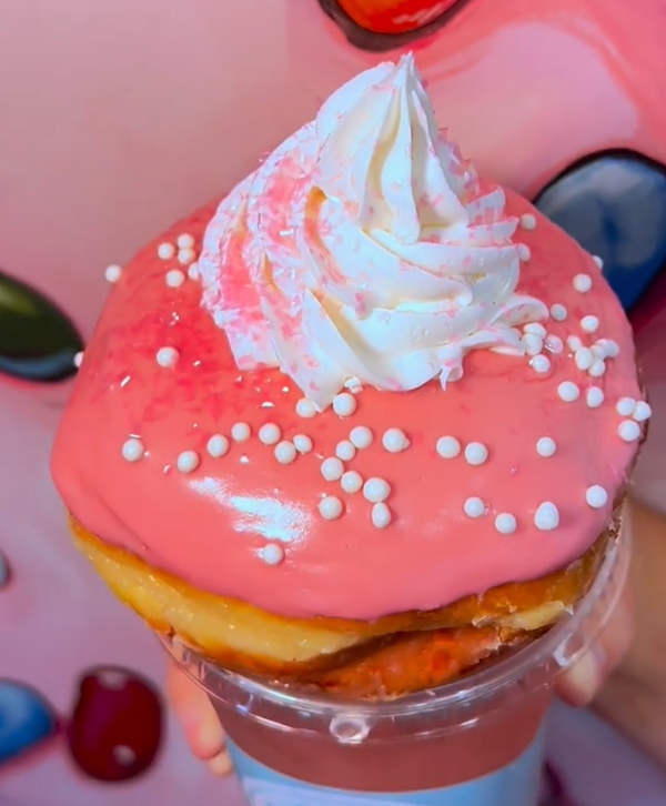 The It’s Fantastic Donut features pink cotton candy icing, candied white pearls, and vanilla buttercream sprinkled with edible glitter. It’s pink, and it’s sparkly! Hi, Barbie!