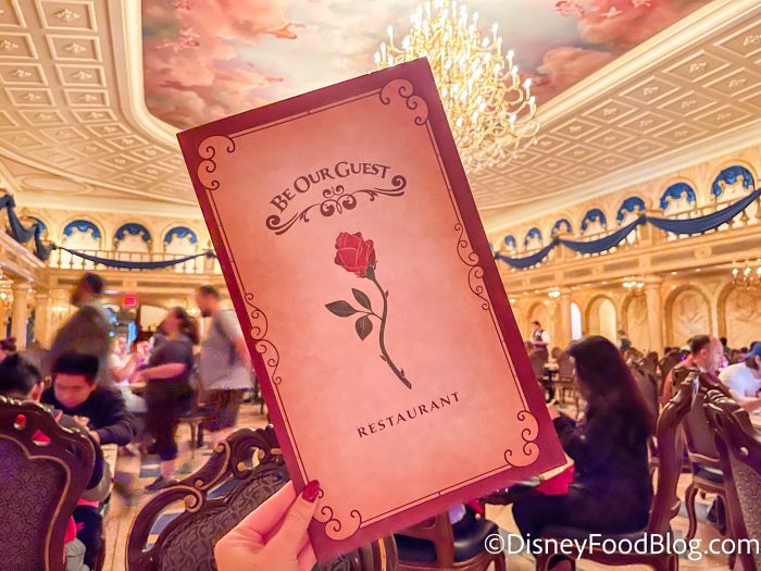 Another in-castle dining experience can be found over at Be Our Guest Restaurant. This spot has guests stepping into Beauty and the Beast, and boy is it realistic! You’ll be seated in either the grand ballroom, the Rose Gallery, or the West Wing. The menu is prix fixe and during the meal, The Beast will walk through the restaurant, but doesn’t come up to individual tables. We definitely miss the days when you could dine in this spot for a fast casual breakfast or a quick service lunch, but right now, your only choice is the expensive prix fixe for lunch or dinner.