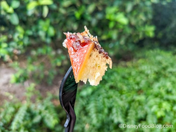 The same is true this year — the cake was so, so moist, and the icing isn’t super overwhelming. Our reporter who tried this isn’t a big fan of chocolate, coconut, or icing, and still didn’t mind the outside of this cake. The raspberry is a super thin layer, but that made this dessert really balanced as opposed to any strong flavors.