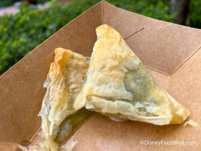First up, we grabbed the Spanakopita, which is a savory pastry with a filling of spinach and cheese. This is priced at $4.75. this year our team member who tried it felt like it was…fine. But, sadly, they shared that it would likely be the last item at this booth they’d get if they had to visit this booth again.