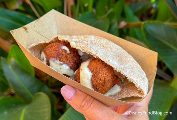 The Fried Falafel Pita with Tahini Sauce for $5.50 has been a delicious vegetarian option when we’ve had this before, though last year we did think it was heavy on the sauce. For a plant-based item, it’s packed with flavor — so delicious!