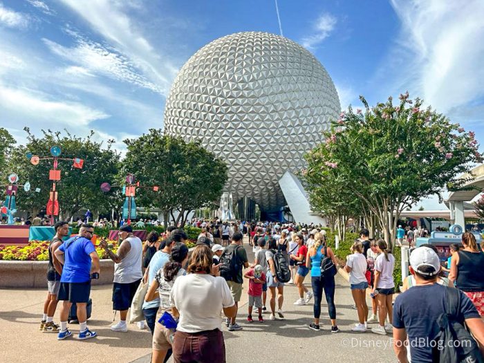 We certainly weren’t alone when we got to EPCOT this morning, but since a majority of the festival booths don’t open until 11AM, the crowds weren’t too bad — yet. At the entrance, there was a bit of a backup right at the beginning of the day, but as we moved further into the park the crowds seemed to disperse.