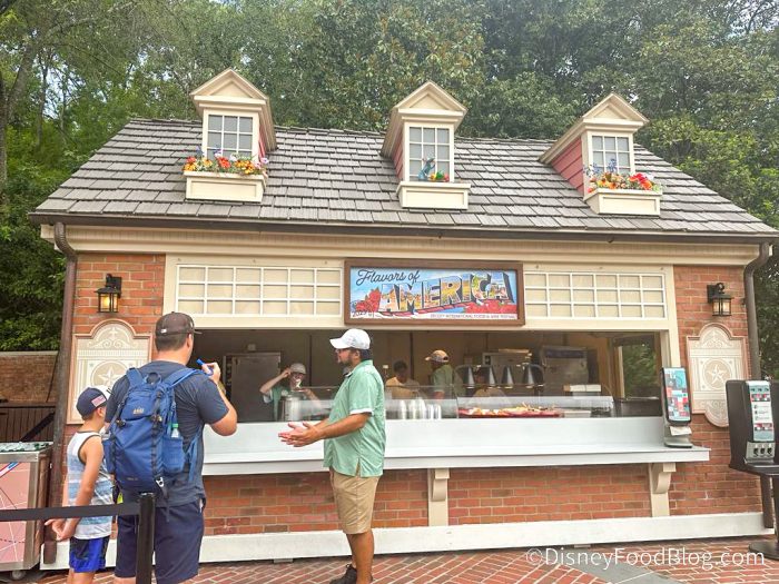 That’s right, The 2023 EPCOT Food & Wine Festival has officially begun and it has a LOT to offer. There are plenty of food booths with tasty items, merchandise items to grab (of course), and even concerts to watch. It might sound overwhelming, and you might be wondering how you could possibly have time to take it all in during your next EPCOT visit. Well, that’s where we come in! We’re reviewing all the eats and sips of the festival so that you know ahead of time what’s worth the try and what’s worth the skip. Speaking of which, we’re heading to one spot in particular — the Flavors of America Booth. Is it worth a try? Let’s find out!