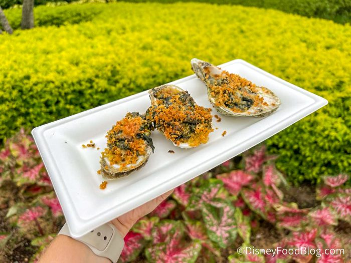 Ultimately, we were blown away by how great the Oysters Rockefeller dish was. We didn’t expect theme park oysters to be such a HIT! The crab cakes were also delicious, but they pale in comparison to the oysters, y’all. Plus, the Cape Codder cocktail was a great, refreshing beverage to have alongside the two dishes. We had a great experience at this booth, and if you love seafood and coastal flavors, you likely will, too.