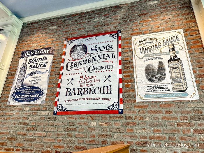 The theming of this restaurant is one of our favorites. The walls are filled with decor to look at all throughout. Just check out this amazing Regal Eagle Smokehouse sign inside above multiple cast iron pans and utensils.