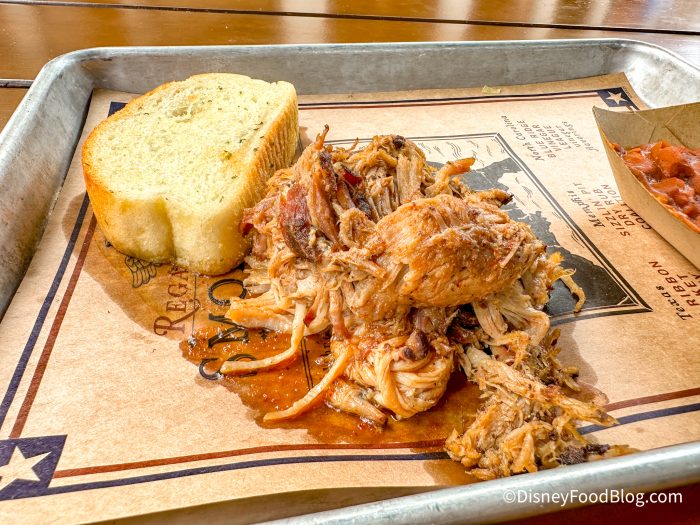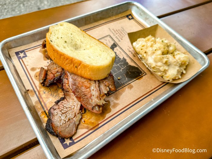 Regal Eagle Smokehouse can be found in the America Pavillion. It lies to the left of the American Adventure and is hard to miss with the signs, tables, and the smell of smoked meat filling the air. Regal Eagle is a quick-service restaurant but it is far from your typical “theme-park food.”