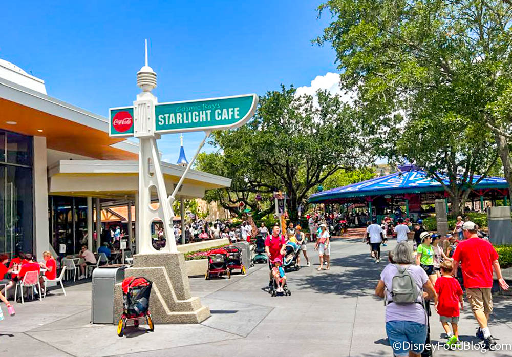 And finally, let’s talk about Cosmic Ray’s Starlight Cafe. As one of the busiest quick service restaurants in all of Disney World, this spot is bound to get crowded during any major mealtime. But there’s nothing quite like the lunch rush!
