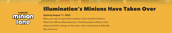 Universal has announced that the Minion Land will officially open on August 11th, 2023!