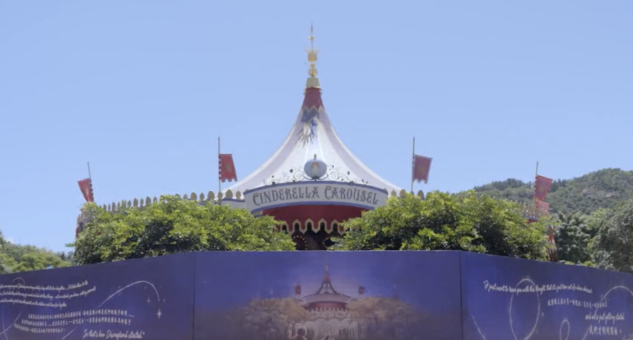 The story behind the statue placement is the memory of Walt taking his daughters to the Griffith Park Merry-Go-Round. So, the Cinderella Carousel in Hong Kong Disneyland seemed like the perfect spot for Walt and Mickey to sit.