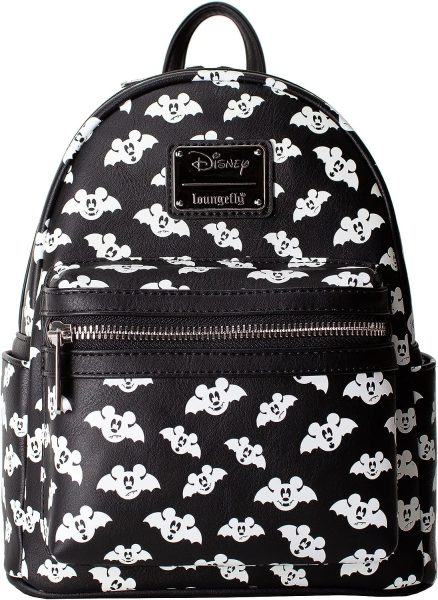 Mickey Bats are everywhere on this backpack with a simple black and white pattern. However, those bats also glow in the dark, making it perfect for spooky Halloween nights in Disney World.