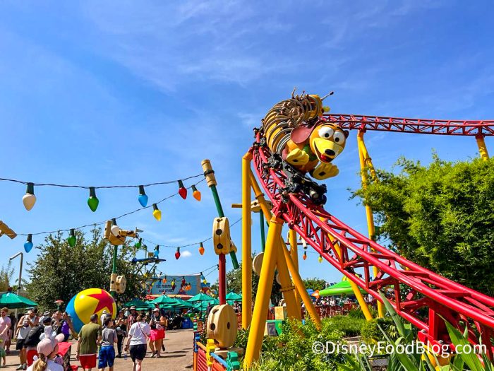 And then there’s Slinky Dog Dash. Listen. Slink. You’re absolutely adorable. But you’re gigantic head blocks EVERYTHING. I can’t see the Toy Story Land below, or the ride sets, or ANYTHING really. So when you’re about to board this one, let a cast member know that you’d like to AVOID row one, if possible, and they’ll more than likely be able to do that for you.