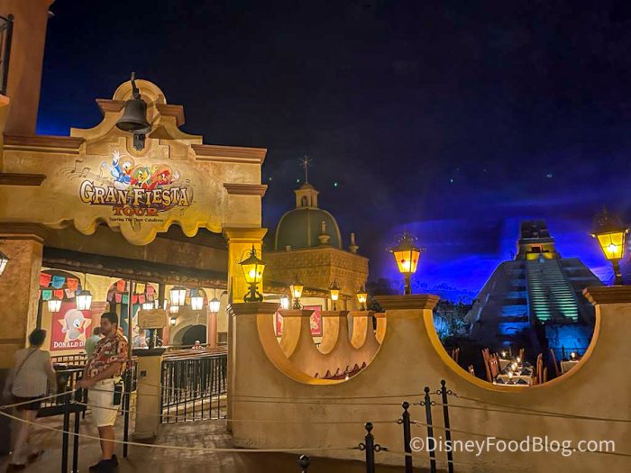 The Mexico Pavilion is the ONLY country in EPCOT’s World Showcase where most of the action’s happening INSIDE an Aztec Pyramid, in order to reflect the nighttime energy of a festive Mexican marketplace underneath a starlit sky no matter the time of day. You’ll find shops, restaurants, and a looming smoking volcano in the distance – and you’ll ALSO find the Gran Fiesta Tour – Starring The Three Caballeros. This gentle boat ride drifts past the San Angel Inn Restaurante before taking you inside the show building, where you’ll meet Jose Carioca, Panchito, and…