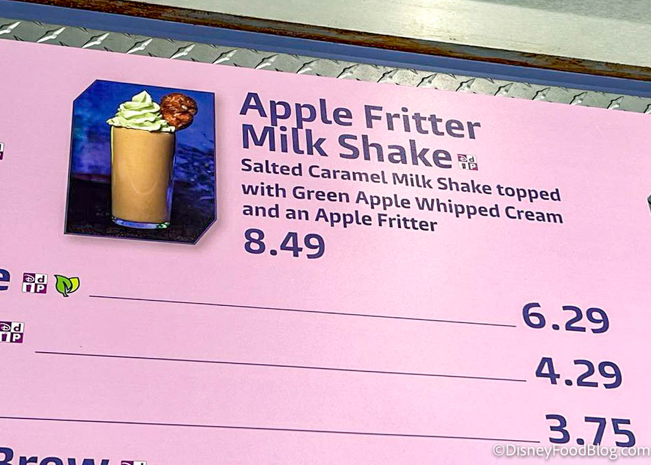 The Apple Fritter Milkshake is here! It’s a salted caramel milkshake topped with green apple whipped cream and an Apple fritter for $8.49! Find it at Auntie Gravity’s in Tomorrowland! pic.twitter.com/dZcjzaKumZ