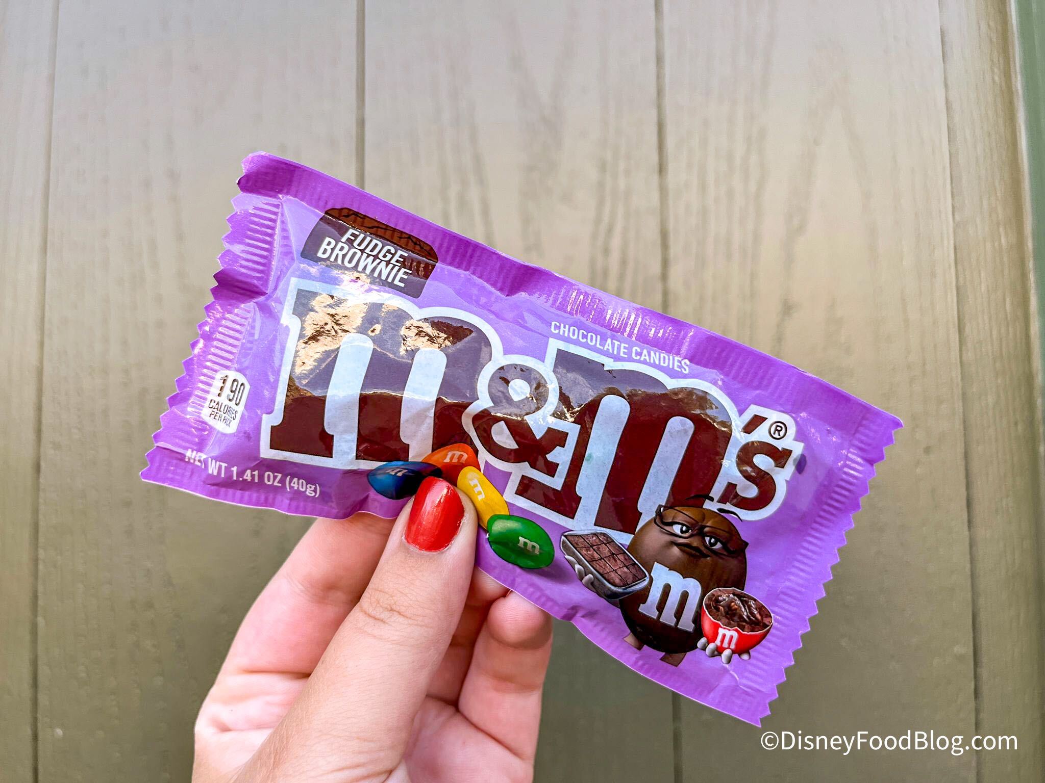 When we visited Mickey’s Not-So-Scary Halloween Party on its opening night we found that Cast Members were handing out BIG BAGS of Fudge Brownie M&Ms at the very first trick-or-treat station, right when you grab your trick-or-treat bags and wristbands. You’ll be herded that way early in the party, so it’s very difficult to miss unless you’re entering the park later in the evening!