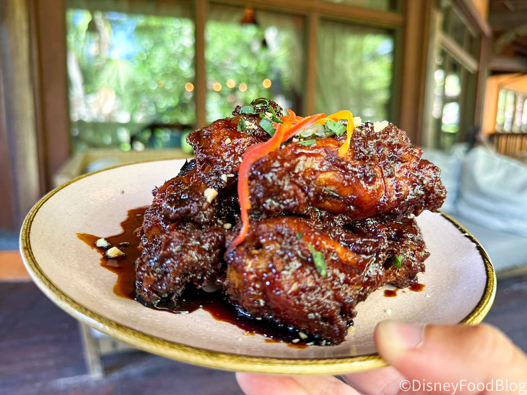 At Disney World, Lounges can typically be found attached to a table service counterpart, thus you will usually find a few appetizers on the menu.