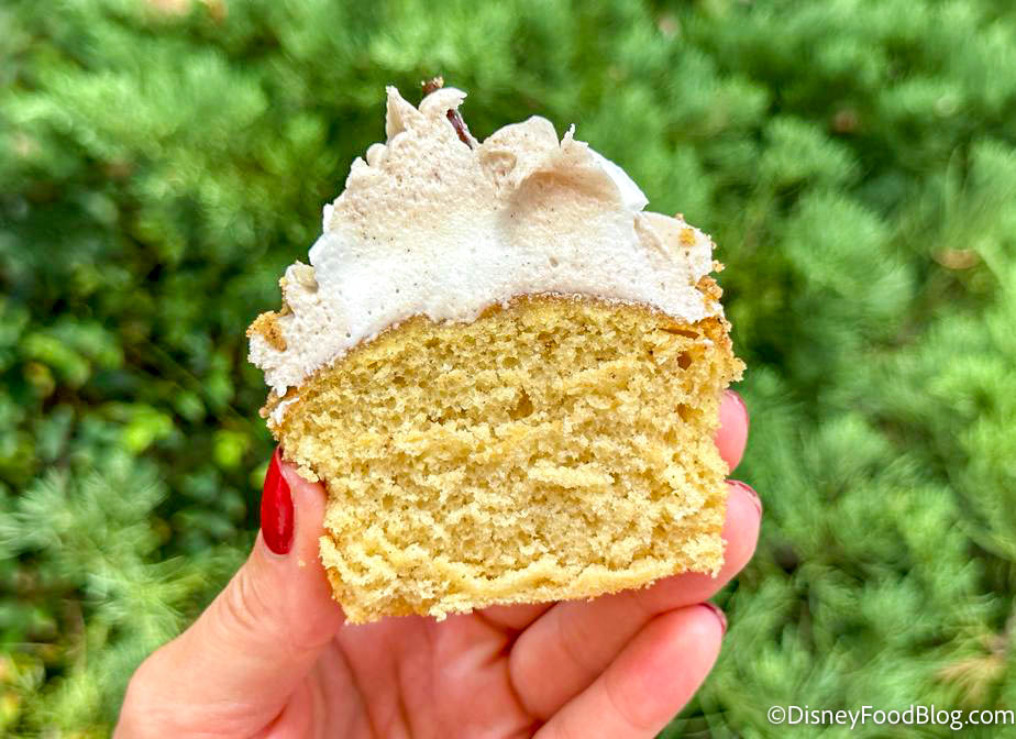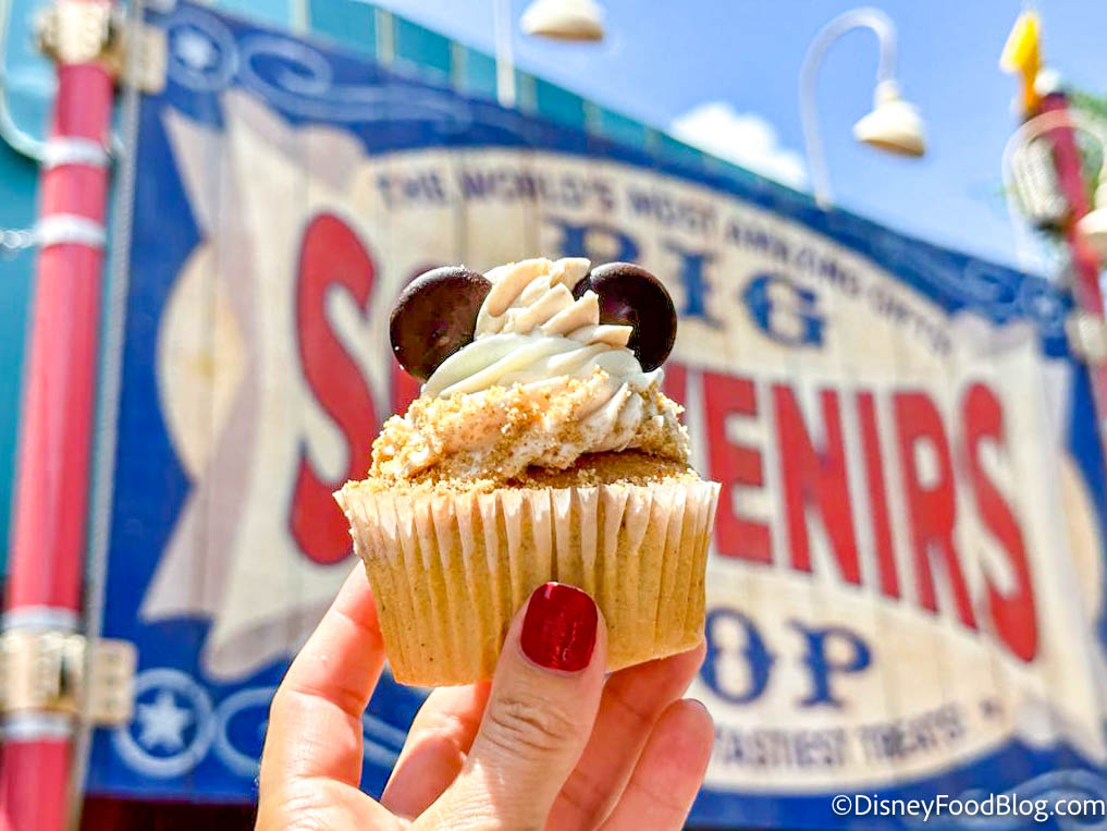 Let’s start with the Churro Cupcake. This is made of a cinnamon cupcake with cinnamon and vanilla icing, cinnamon sugar crumbles, and chocolate Mickey ears. This is just slightly different from what we had in 2021, but mostly similar.