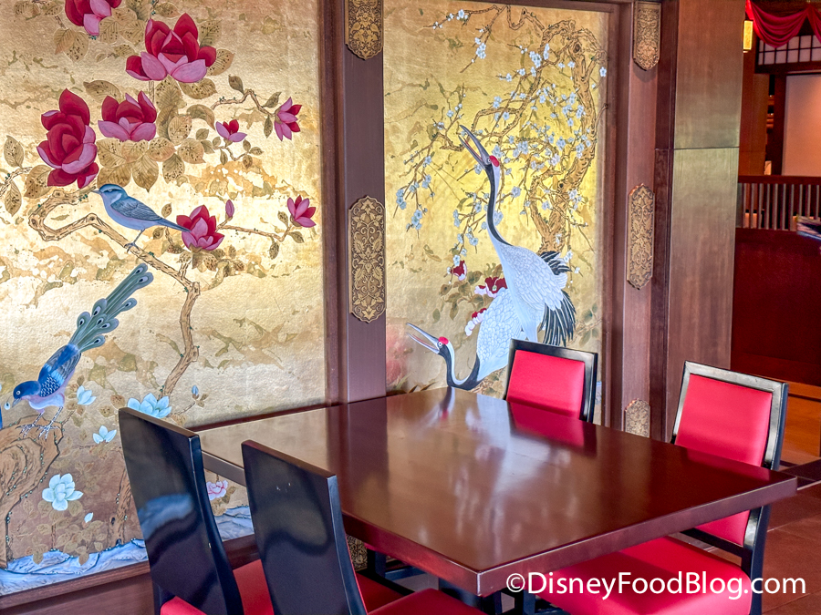 The restaurant is located in the Japan Pavilion, on the second floor — above the Mitsukoshi Department Store. With a heavy emphasis on the changing seasons, you’ll find references to different times of the year throughout much of the decor.