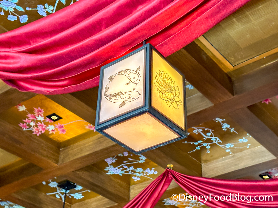 Lanterns hang around the dining room, each dedicated to one of the four seasons. There are Spring lanterns with cherry blossoms…