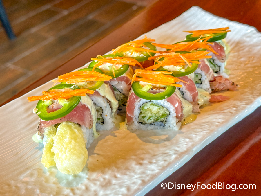 Shiki-Sai: Sushi Izakaya is the newest table-service restaurant in EPCOT that features a “festive dining experience in a sharable Izakaya-style.” The menu includes items like sushi and teppan, as well as an open sushi bar and grill. Sushi lovers can enjoy Kobore Sushi, Tokyo Negi Roll, Funamori, and more in an atmosphere that has a casual pub-style feel with an emphasis on drinks and conversation with friends.