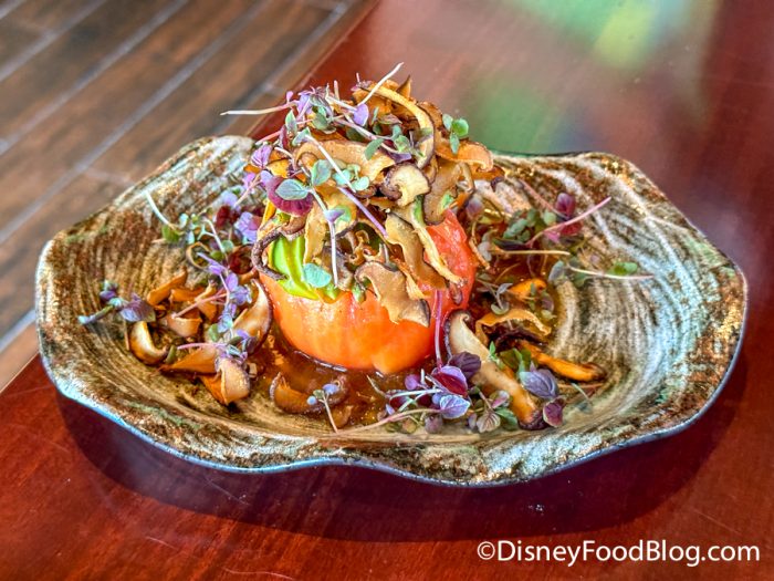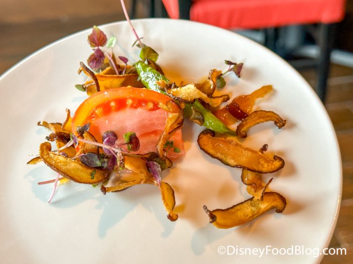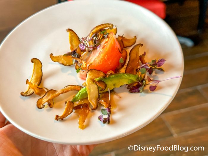 This was full of flavor! The tomatoes were fresh and crisp and the avocado added a nice creamy texture to the dish. The mushrooms on top added a really fun crunch! They had a similar texture to dehydrated apple slices but with a bold umami flavor.