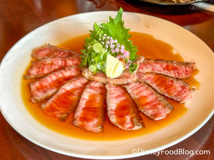 Consider adding Shiki-Sai: Sushi Izakaya to your list if you’re looking for an adventurous new place to eat in EPCOT. We LOVED our meal — the food was fresh, the servers were fantastic, and the menu was extensive. We practically left with no complaints! For all you sushi fans, this is a must-do. That said, even if you aren’t a sushi lover, there’s plenty for you to explore here, too. From udon to wagyu, there’s plenty to eat. To be fair, we spent nearly $500 for all that food, so if your budget is limited, this might not be the place to go. We were among the first to eat here, and we were SO pleased with the new restaurant.