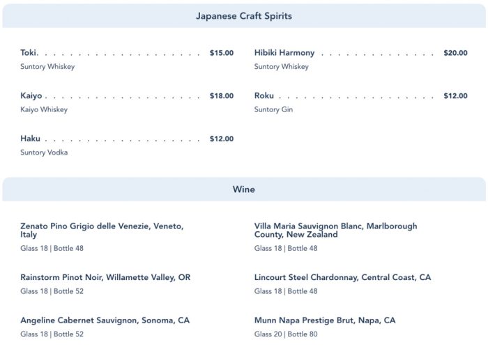 The drink menu is pretty extensive, too. We saw a selection of Beer, Wine, and Japanese Craft Spirits.