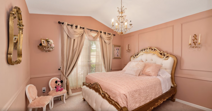 Next, a room fit for a princess. This room even comes with a closet full of Disney princess dresses available for guests to try on.