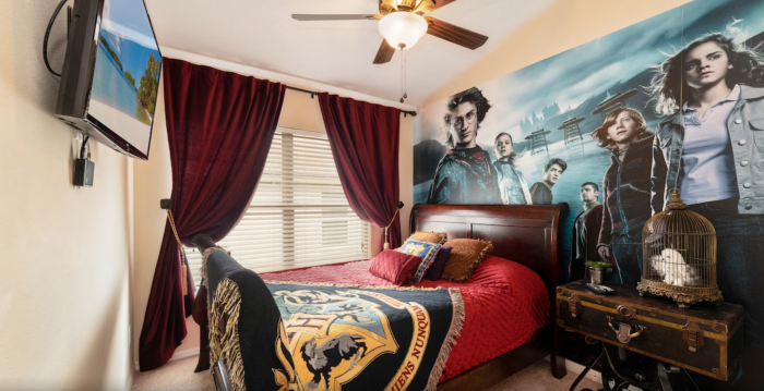 Finally, this Harry Potter room will have fans so excited over the large mural on the wall. We think we even spy Hedwig in there?!