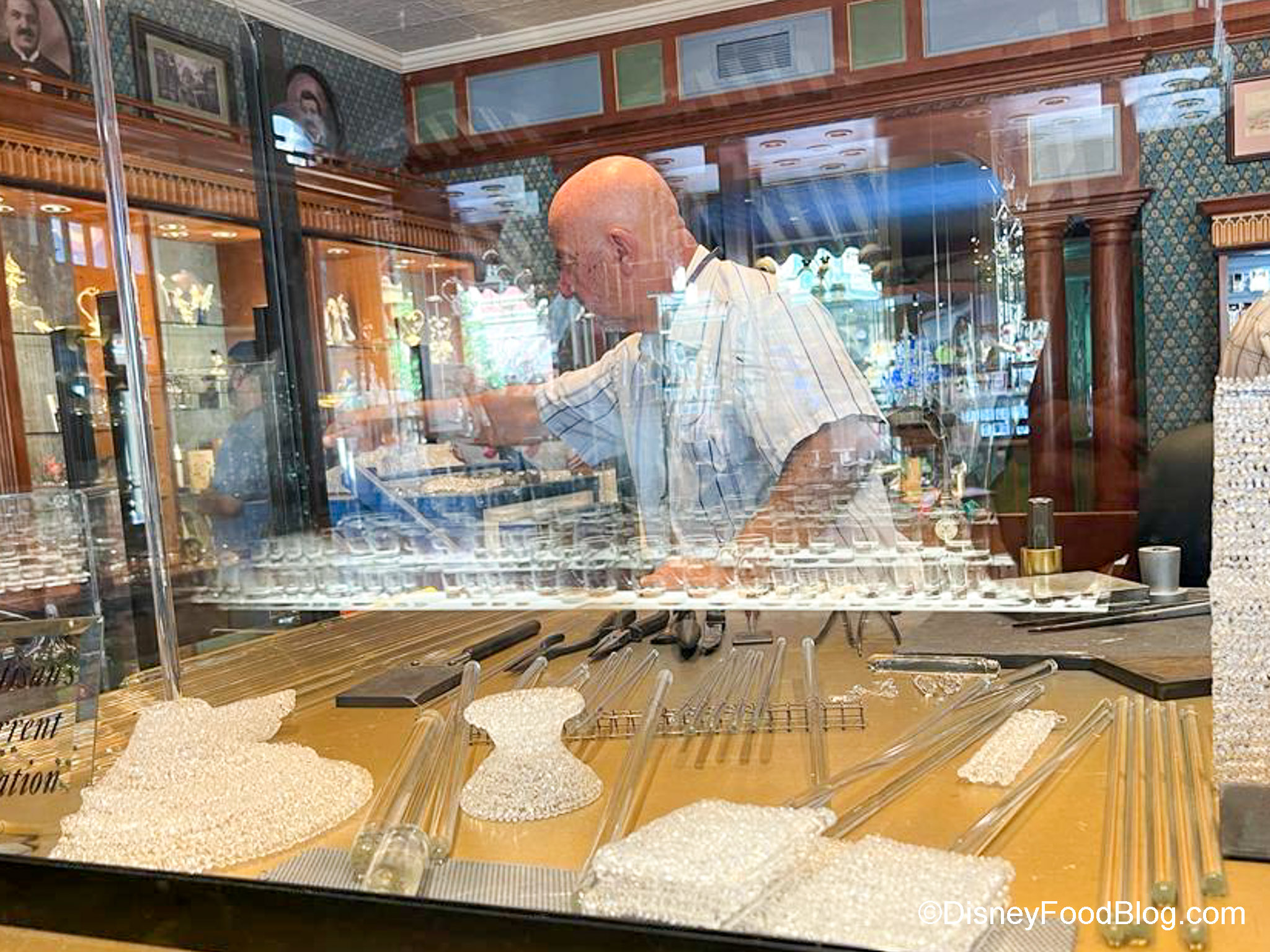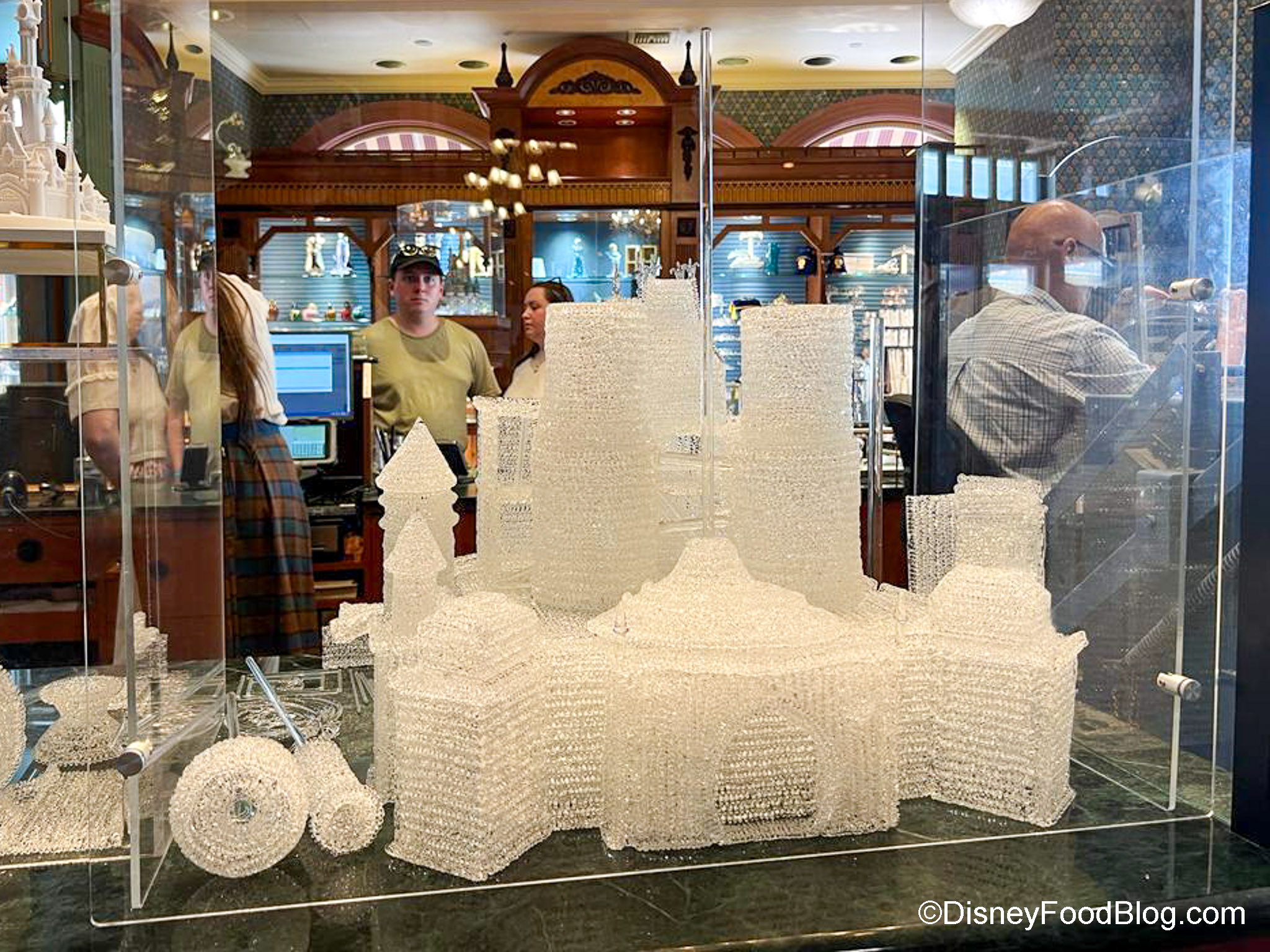 Some of our favorite pricey souvenirs, though, are probably those found in Crystal Arts by Arribas Bros. — and if you’ve visited that shop in Magic Kingdom, you’ll know some of those souvenirs cost some serious moolah. Well, there’s a NEW expensive work of art being created at Crystal Arts, and this time, it’s a CASTLE.