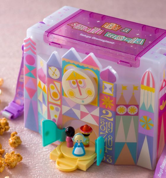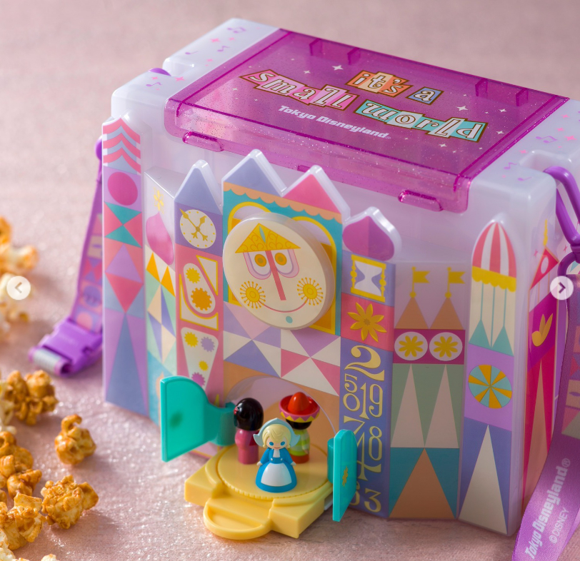 It doesn’t matter how you feel about “it’s a small world,” it’s still an adorable ride concept made even more adorable by this “it’s a small world” popcorn bucket” that looks like the ride and has a little door that opens revealing the dolls rotating on it!