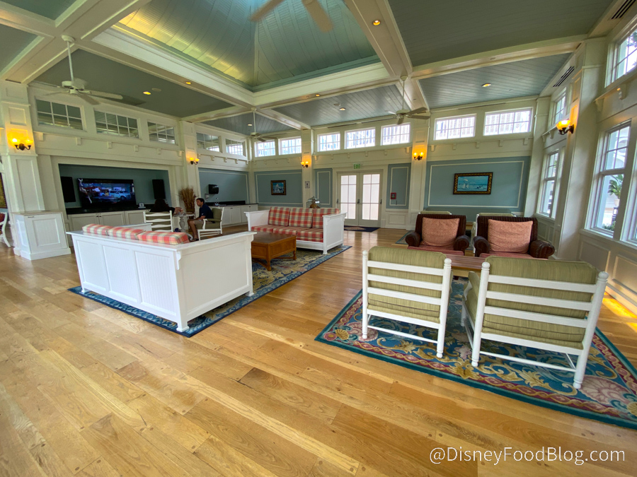 We also love the Solarium at the Beach Club Resort! This spot is located across from Beach Club Marketplace and is bright, airy, has plenty of seating, a television, and not much else — and if you ask us, that can be a good thing in Disney World. This spot has serene vibes and cozy spots to sit and relax.