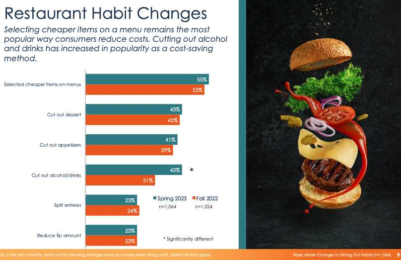 Americans aren’t just eating out less when they go out though, they’re also CHANGING the way they eat when they do go out. For example, the most popular way to cut costs when eating out is by picking cheaper items on the menu to buy.