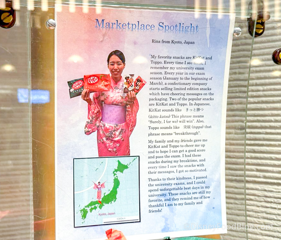 When we are at Disney, we bring back treats for the Countries in World Showcase. Last time we chose Japan. we purchased all the kinds of Kit-Kats they had and we had a “tasting”. We love all of them, though some are VERY different. The staff was wonderful at translating for us so we knew what we were buying and could tell our staff. It was so popular, I have a list for my “alone” trip in October.