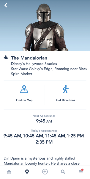 Finding these two can be quite the quest, but Disney has just made it a little easier! The My Disney Experience app now lists the available times at which The Mandalorian will stroll through Galaxy’s Edge.