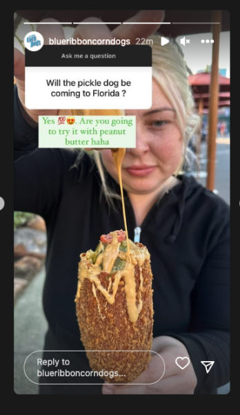 And then we got to the question of the hour — someone asked whether the infamous Pickle Corn Dog will officially be coming to Florida and Blue Ribbon Corn Dogs confirmed that YES, it 100% WILL! SUCCESS!