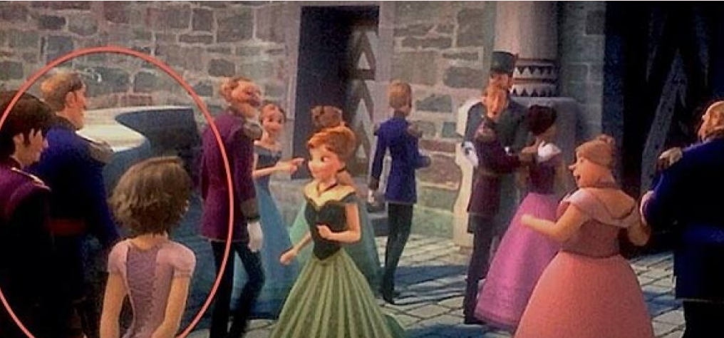 But Olaf acting out The Little Mermaid, Lion King, and Moana weren’t the only times that other Disney stories merged into the Frozen storyline. Many viewers noticed a quick nod to Rapunzel from Tangled in Frozen.